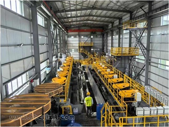 該選銅車間設(shè)計年產(chǎn)銅精粉8000噸,年產(chǎn)硫精粉8萬噸,粗選采用了三臺大型高效節(jié)能的新型100立浮選機(jī),精選則利用兩臺斜板分級機(jī)、一組高效旋流器和一臺塔磨機(jī),以及多級浮選設(shè)備、數(shù)字化加藥系統(tǒng)等先進(jìn)工藝和設(shè)備,自動化程度高,旨在實現(xiàn)更高的銅、硫回收率和資源綜合利用水平。